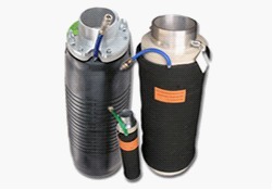 采用特殊的NR-SBR 合成橡胶制造。所有气囊产品出厂前在额定压力状态下进行多次严格测试以确保气囊的耐久性和安全性。气囊特点重量轻,本体尺寸小,耐压强度优,便于从小尺寸检查井口(650mm)进入大直径管道进行堵水作业,所有气囊可以自由折弯90度,有一定的耐腐蚀性能。适用直径从40mm到2700mm 范围。导流式气囊配以1", 2" 或4"的导流孔道, 测试气囊配有NPT 空气测试插孔装置。 |